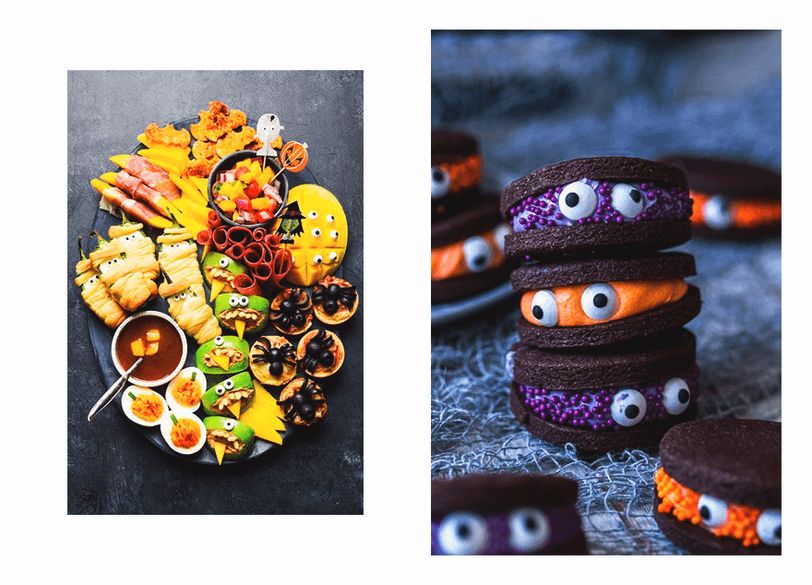 Неотъемлемая часть Хэллоуина — это сладости. Чем меньше из них будет упаковано в пластик, тем экологичнее получится праздник. Ты можешь и сама приготовить угощения: испечь печенье или слойки, сделать шоколад и креативно украсить обычные блюда. Используй не одноразовую пластиковую посуду, а обычную — лучше помыть ее после вечеринки, чем распространять пластиковые материалы. Если же ты планируешь выйти из дома и отпраздновать в другом месте, покупай одноразовую посуду из экологичных материалов: вилки из бамбука и пальмовых листьев, бумажные коктейльные трубочки, ложки из кукурузного крахмала, бумажные стаканы и тарелки из сахарного тростника.