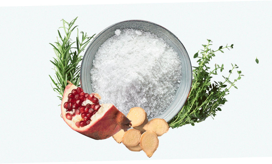 Гранатовая соль относится к типу ароматизированных, создается руками человека и выполняет 2 функции: придать блюду насыщенный аромат и необычный вкус с добавлением пикантных ноток. С точки зрения здоровья, она считается полезной, поскольку содержит свежий гранат, тимьян, майоран, розмарин, мяту, молотый имбирь и несколько других кавказских пряных трав. Такая приправа способна не только придать блюду оригинальное вкусовое звучание, но и укрепить иммунитет, улучшить пищеварение, работу мозга, привести нервную систему в порядок.