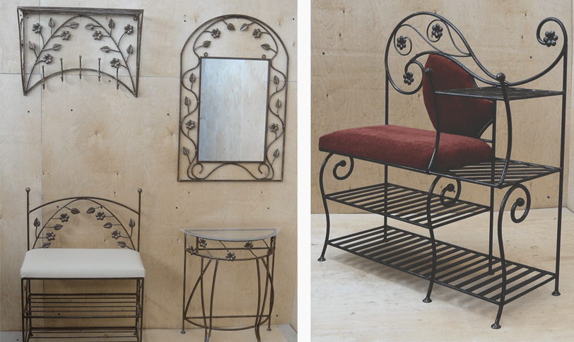Кованая мебель – изящное кресло, роскошная кровать, лофтовые стеллажи, цельная прихожая с искусным узором — будет гармонично смотреться с природными материалами: деревом, кожей или камнем.