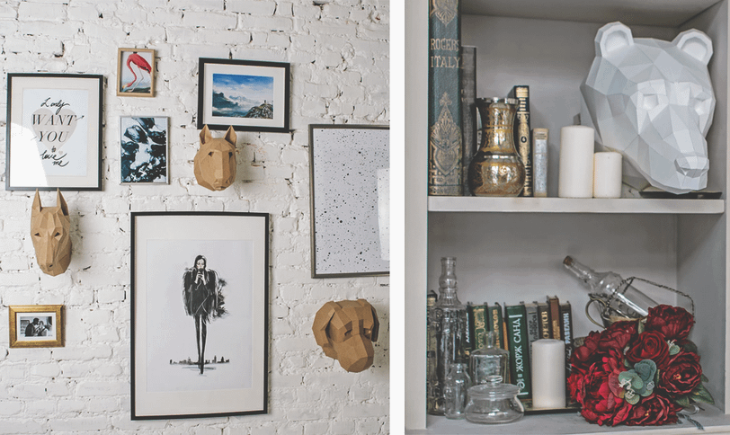 Полигональные фигуры – абсолютный тренд современного дизайна. Ты наверняка видела их в оформлении витрин и торговых залов. В интерьере квартиры футуристичные головы животных из бумаги или картона выглядят не менее впечатляюще.