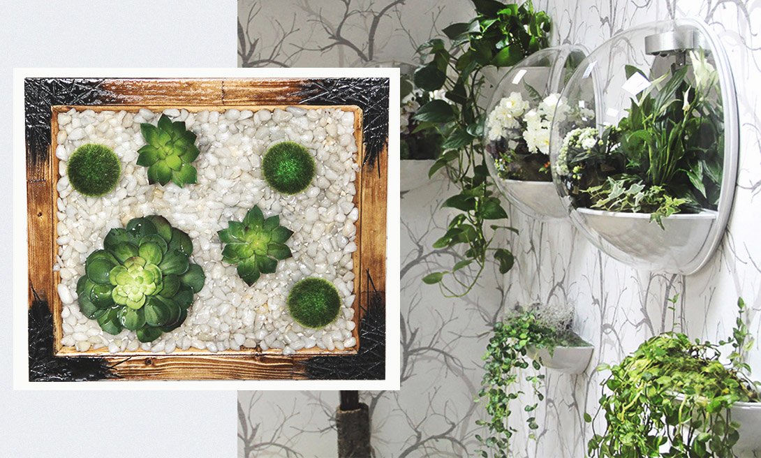 Настенное панно – отличный способ украсить интерьер и сделать его уникальным. Оно станет прекрасной альтернативой картинам, фотографиям, настенным надписям, аппликациям и наклейкам. Составляющие цветочной композиции: рама из натурального дерева, декоративные камни, искусственные орхидеи и суккуленты. Повесь панно в гостиную, на кухню или в ванную комнату, и помещение заиграет свежими красками.
