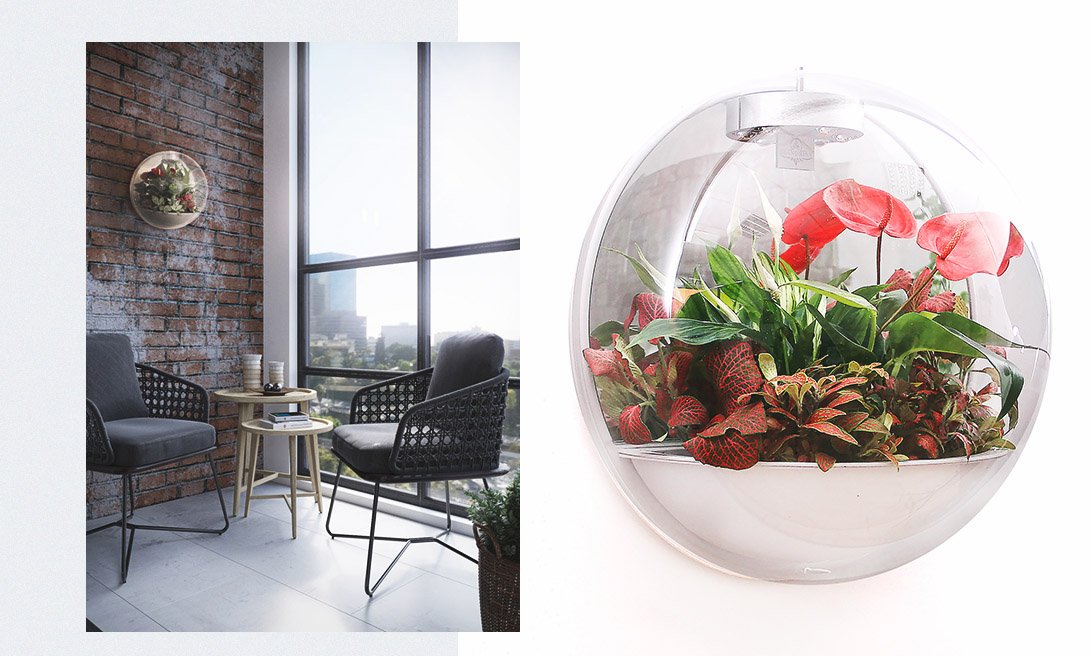 Флорариум с влаголюбивыми растениями – прекрасное наполнение для любой квартиры. Только представь: у тебя будет свой собственный маленький сад, которым ты сможешь наслаждаться каждый день. Настенный флорариум — это стильное дизайнерское оформление дома с включением элементов живой природы. Композиция представляет собой уникальную разработку, в основе которой лежит современный комплекс технологий: защитный купол, система освещения и система вентиляции для корней. Живой сад будет способствовать оздоровлению микроклимата помещения, позволит тебе отдохнуть и расслабиться в уютной атмосфере.