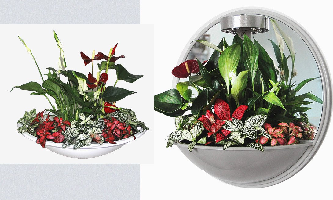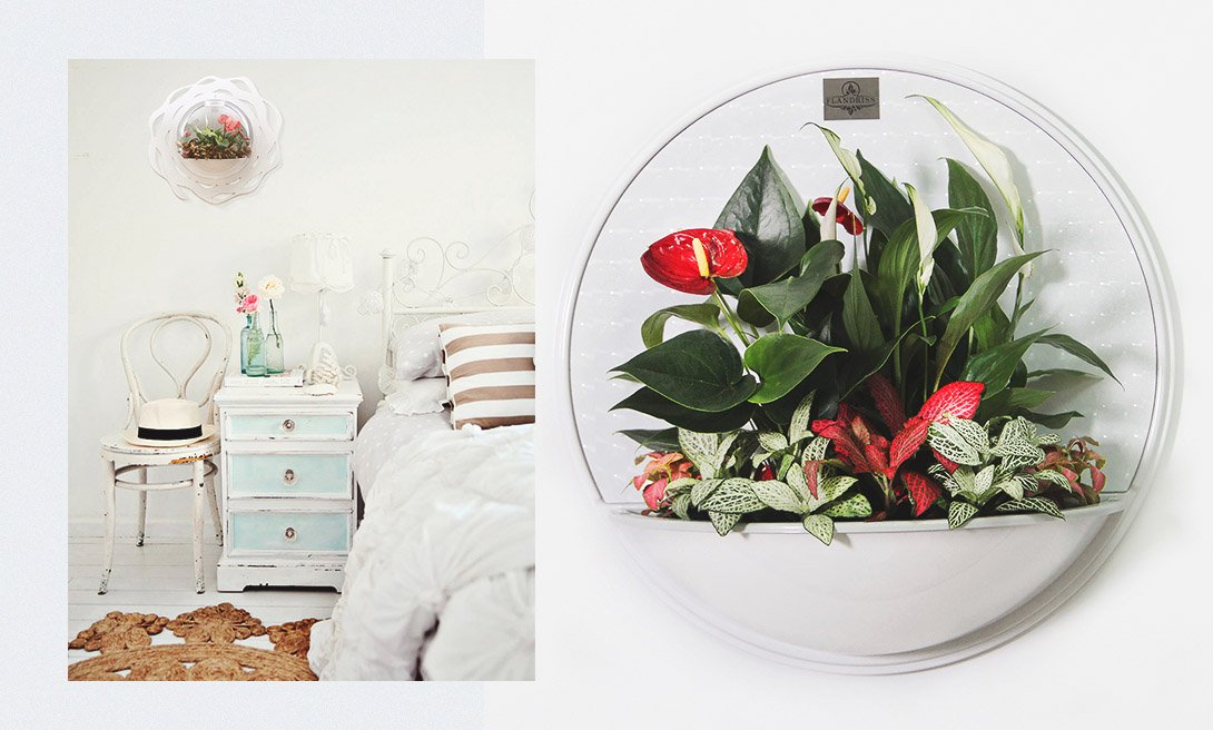 Подвесные цветочные модели от «Flandriss» представляют собой чашу с зеркалом и встроенным освещением, что создает впечатление, будто на стене находится не просто настенное кашпо, а удивительный предмет интерьера — светильник с живыми цветочными композициями. Базовая цветочная композиция чаши — антуриум, спатифиллум и фиттония. Освежи обстановку в спальне красочным живым элементом декора. Ты можешь выбрать любую цветочную композицию, флористы соберут ее в течение 1-2 дней.