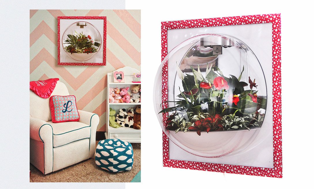 Красочная композиция в розовом цвете может стать волшебным украшением стен детской комнаты. Настенный сад заключен в багет конфетного цвета, который не только преобразит интерьер и даст простор детскому воображению, но и обеспечит здоровую атмосферу в комнате твоего ребенка за счет постоянной циркуляции свежего воздуха . Повесив такой флорариум в своем доме, ты и твой ребенок будете обеспечены положительными эмоциями на каждый день.
