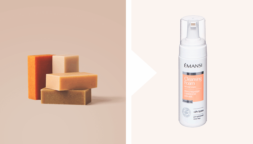Чем заменить: пенками, гелями, молочком или гидрофильными маслами, которые не содержат вредных веществ и подходят твоему типу кожи. Так, для проблемной кожи идеально подойдет безсульфатная очищающая пенка с комплексом анти-акне. В составе есть сапонины мыльного дерева и белого аспарагуса, которые мягко и глубоко очищают кожу, восстанавливая ее на клеточном уровне. Фитосфингозин и экстракты трав, а именно центеллы азиатской, можжевельника, гамамелиса, шалфея и тимьяна обыкновенного, оказывают противовоспалительное действие, сужают поры и нормализуют выработку кожного сала, тем самым препятствуя развитию акне.