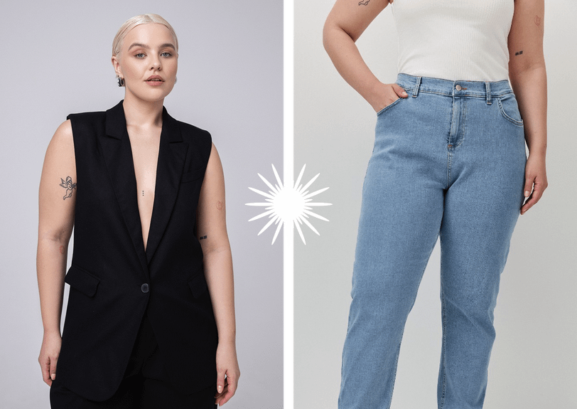 Джинсы mom fit с высокой посадкой — идеальный вариант для плюс-сайз девушек. Важно, чтобы вещь была сделана из плотного денима: это поможет скрыть некоторые особенности фигуры и «собрать» ее.