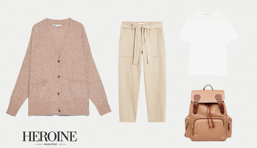 Любимое сочетание предстоящего сезона: белая футболка, широкие прямые джинсы и кроссовки. Выбирай бежево-коричневые оттенки — получится расслабленный городской образ, который подойдет на каждый день. Сверху можно накинуть шерстяную рубашку в клетку, свитер-оверсайз или кардиган, а на плечо — небольшой рюкзак. Что касается обуви — советуем присмотреться к ботинкам или кроссовкам на объемной подошве. Получится стильно, женственно и удобно.