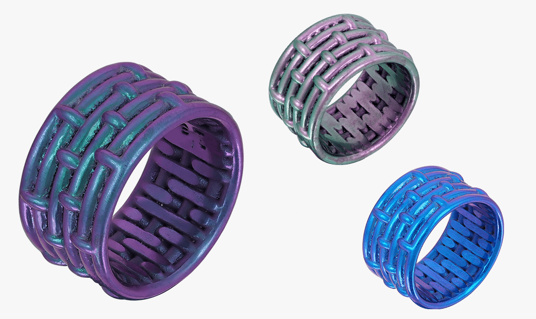 Надеть небольшое украшение необычной расцветки — самый простой способ быстро освежить наряд. Мы предлагаем ориентироваться на титановое кольцо оттенка радужный индиго от бренда l’atmosphere jewelry. Не бойся его кричащей расцветки, ее легко будет сочетать как с базовыми, так и с принтованными вещами. Кстати, дизайн яркого аксессуара был вдохновлен технологией создания ткацких изделий. Если присмотреться, то текстура кольца напоминает рисунок переплетения нитей в ткани.