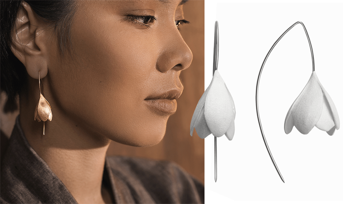 Любители цветочных сюжетов по-достоинству оценят изящные серьги «Крокусы» от ювелирного бренда Alchemia Jewellery. Это украшение из серебра 925 пробы — часть ювелирной коллекции «Восток». Символизирующий пробуждение природы и новой жизни крокус поможет тебе забыть о холоде и с легкостью дождаться первых лучей весеннего солнца. Серьги могут быть выполнены в различных вариантах: молоко, сатин, сатин с золочением, сатин с черным родием, сатин с павлиньим покрытием.