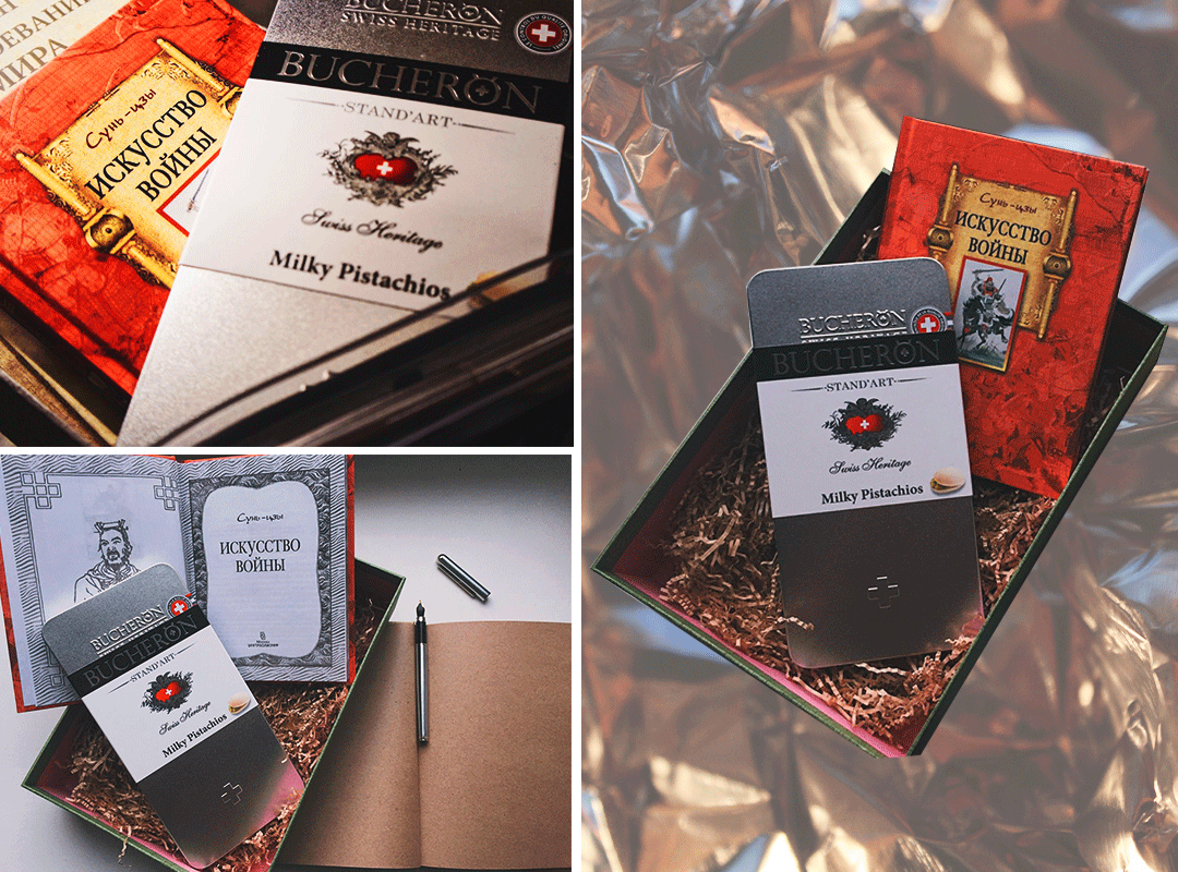 Отличная идея подарка для тех, кто много времени проводит с бумагами за столом, а вечерами любит читать, параллельно делая заметки. В подарочную коробку входит трактат китайского военного стратега Сунь-Цзы «Искусство войны», представляющий собой классическое руководство по разрешению конфликтов любого уровня, блокнот из крафтовой бумаги с надписью «План по завоеванию мира» и стильная перьевая ручка Silver Prestige. Набор удачно дополнен вкуснейшим молочным шоколадом швейцарской марки Bucheron, упакованным в стильную жестяную коробку.