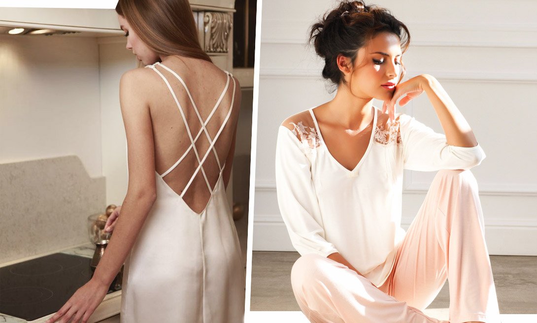 Для романтического настроения держи под рукой более соблазнительный вариант – шелковую сорочку. В ней ты вообще забудешь, что одета. Сорочка из черного шелка с крупными белоснежными цветами и невесомыми бретелями – лучший выбор для домашнего ужина на двоих. Укороченную модель с кружевными вставками прибереги для постели, тем более что спать в шелковой одежде – одно удовольствие.