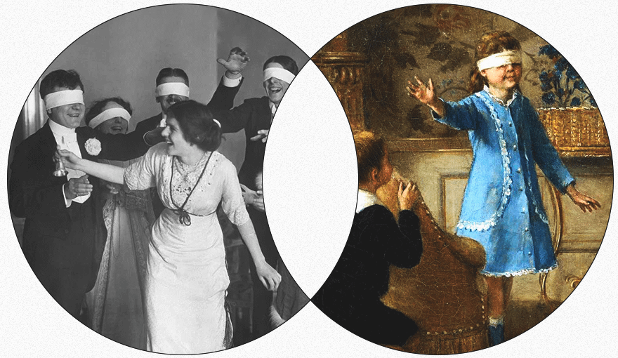 Эта игра гораздо опаснее, чем ее обратный аналог, когда одному игроку завязывают глаза и он пытается поймать остальных. Вполне вероятно, что дети викторианской эпохи нередко получали травмы, сталкиваясь друг с другом или падая на землю.