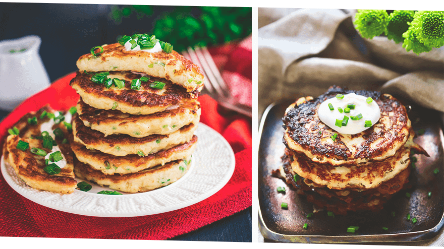 Это картофельные оладьи, в которых используется и пюре, и тертый сырой картофель. Можно подавать на завтрак или ужин, дополнив жареными сосисками.