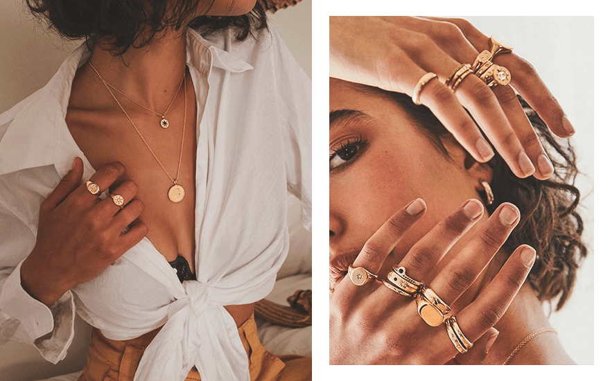 Тренд на массивные кольца продолжает набирать популярность: в предстоящих сезонах смело можно носить массивные перстни-печатки, изящные вензели и элегантные разъемные модели. Также следует взять за основу комбинацию из нескольких колец. Причем необязательно выбирать тонкие и минималистичные — ширина, фактура и цвет колец могут быть самыми разными. Такие аксессуары действительно способны сделать даже самый простой и скучный образ стильным.