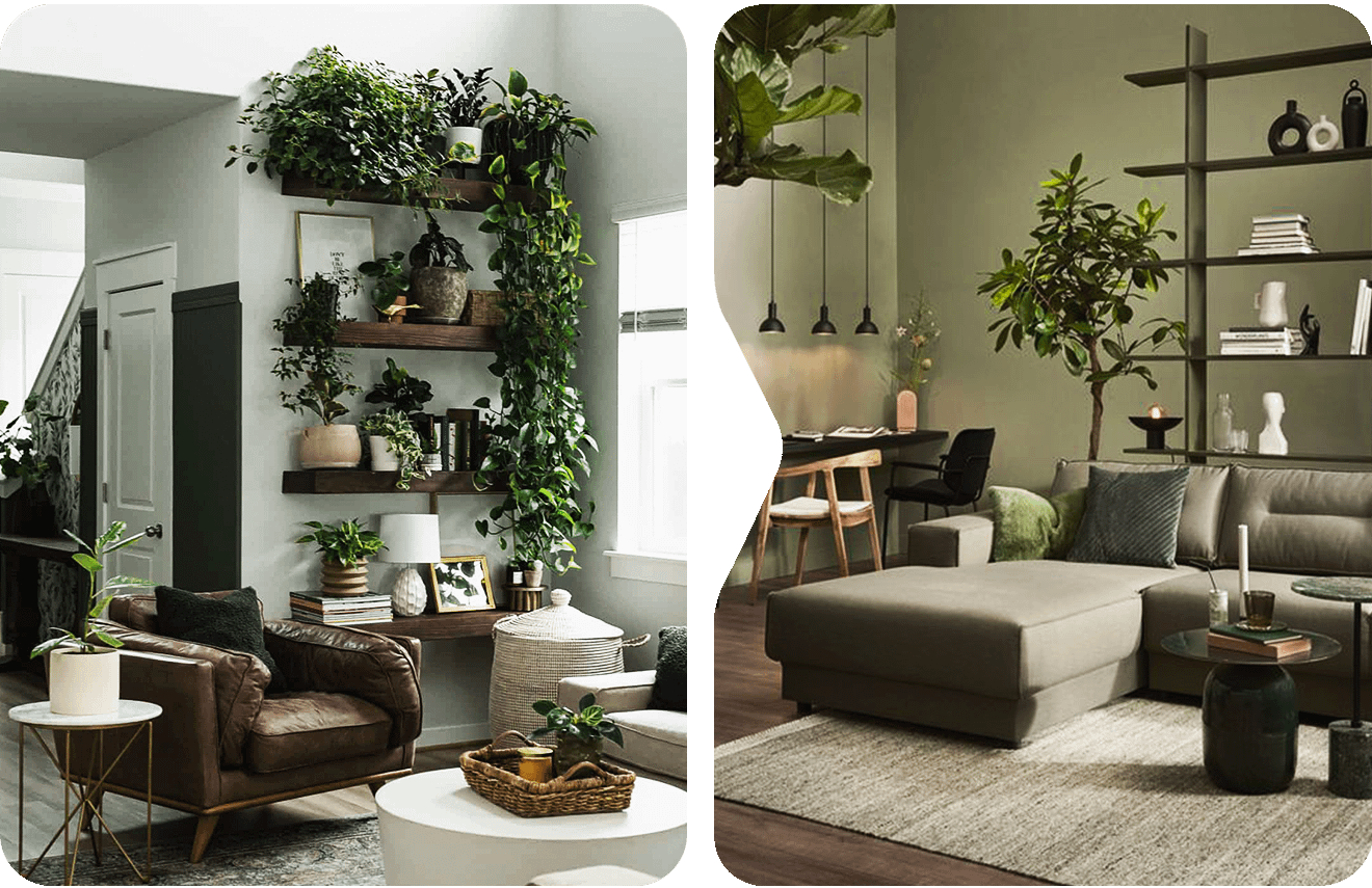 В трендах остается экологичность и близость к природе. Озеленение бывает как глобальным — вроде свисающих лиан или мха на стенах, так и точечным.