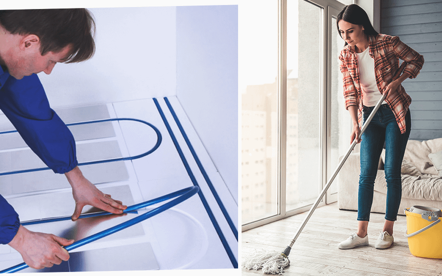С теплыми полами об этой проблеме можно забыть: нет переноса пыли, а батареи просто не нужны. Однако такая схема работает только для частных домов: законодательство запрещает демонтаж батарей в многоквартирных домах.