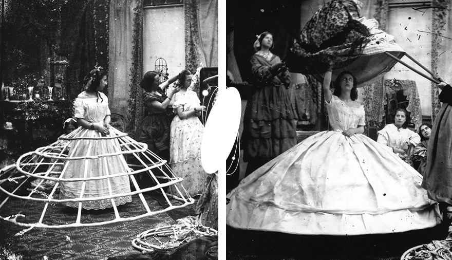 Период кринолина в истории длился с 1850 по 1869 год. Такие широкие юбки на каркасе не были удобными, если не считать тот факт, что они создавали достаточно личного пространства вокруг обладательниц.