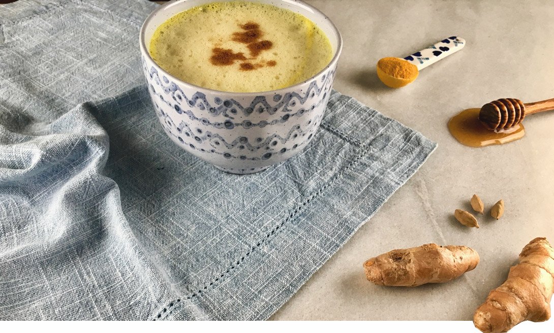 Нагрей молоко в маленькой кастрюле, не доводя до кипения, затем добавь куркуму, имбирь и корицу, а также кокосовое масло. Перемешивай, не останавливаясь. Затем наливай в кружку через ситечко, чтобы отфильтровать крупные ингредиенты. Добавь мед по вкусу.