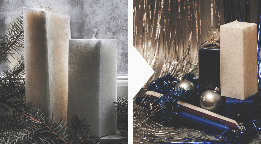 Светлые ажурные свечи будут идеально смотреться на праздничном столе, дополненном скатертью и салфетками с изящным орнаментом. Отдай предпочтение натуральным приглушенным оттенкам вроде бежевого, небесно-голубого, мятного, персикового, терракотового и пыльно-розового. Наиболее интересно будут смотреться белые свечи, по фактуре напоминающие лед, или цветные, стилизованные под мрамор. Они привнесут в помещение природное спокойствие, создав расслабленную обстановку.