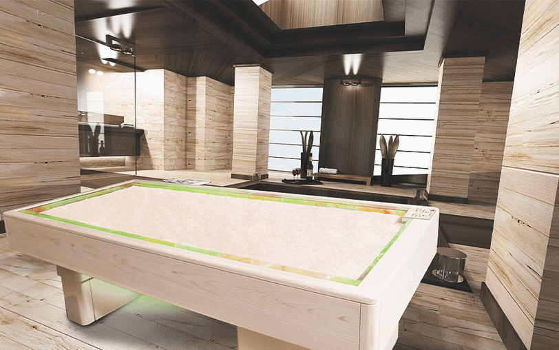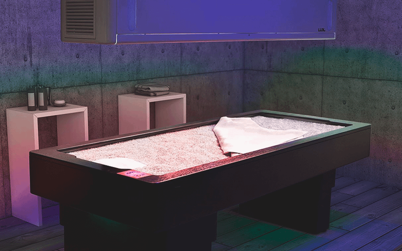 Решение: массажная спа-кушетка Sabbia поможет разогреть мышцы и сделать их более эластичными, а также уменьшить болезненные ощущения после интенсивной тренировки или тяжелого рабочего дня. Особенность кушетки — поверхность из кварцевого песка, который способен нагреваться до 32–40 градусов. В первую очередь это приятно: просто закрываешь глаза и ни о чем не думаешь, отключившись от повседневных проблем на пару часов. Процедуру массажа теплым песком можно совместить с сеансом хромотерапии для большего эффекта.