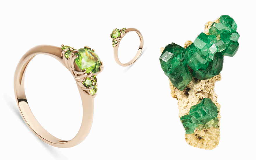 Демантоид — редкая и весьма необычная разновидность граната насыщенного травяного цвета. В коллекциях ювелиров камень появился относительно недавно, в конце 19 века, и первые его образцы были обнаружены на Урале. По версии университета Pantone, в 2020 году благородные оттенки лесной зелени будут в списке трендовых, так что можешь смело добавлять демантоид в свою коллекцию украшений. Даже одиночный аксессуар станет сочным акцентом в гардеробе, будет излучать живую энергию и настраивать на умиротворение.