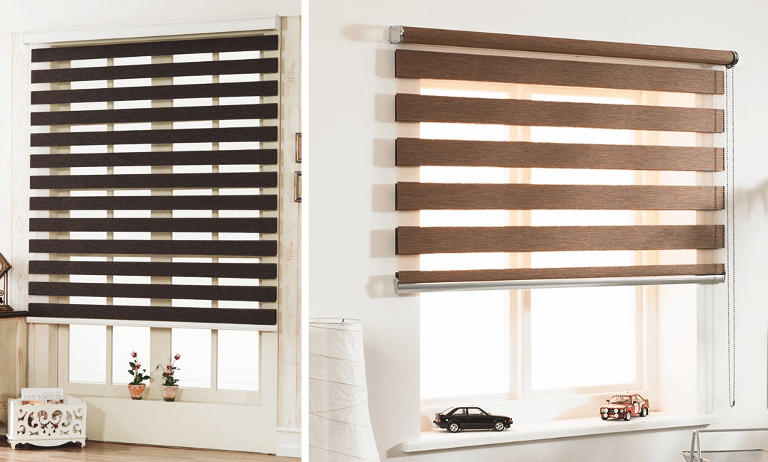 Особенность рулонных штор «День-ночь» заключается в том, что они состоят из чередующиеся полос полупрозрачной и плотной ткани. Такие шторы крепятся непосредственно на оконную раму, поэтому тебе не придется заморачиваться с установкой карниза. Их можно сочетать с любыми другими шторами либо использовать как самостоятельный элемент декора, особенно если они крепятся в небольшом помещении.