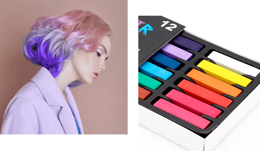 Цветные мелки — это бьюти-средство, содержащее в себе красящий пигмент, который застывает на поверхности волос при контакте с воздухом или нагретым утюжком для волос. При этом внутрь волос краска не проникает, поэтому смывается при первом мытье головы с использованием шампуня.