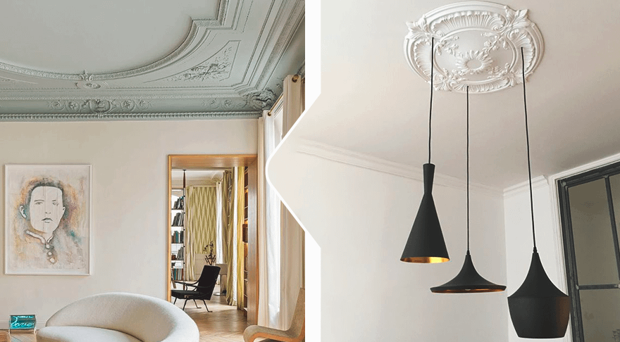 Эта отличительная деталь более роскошных советских квартир считается одной из наиболее привлекательных. Гипсовые лепнины на высоких потолках формируют пространство и украшают даже самые скромные интерьеры. Если тебе повезло выкупить квартиру, в которой сохранилась лепнина, обязательно отреставрируй ее и сделай акцентной деталью интерьера.