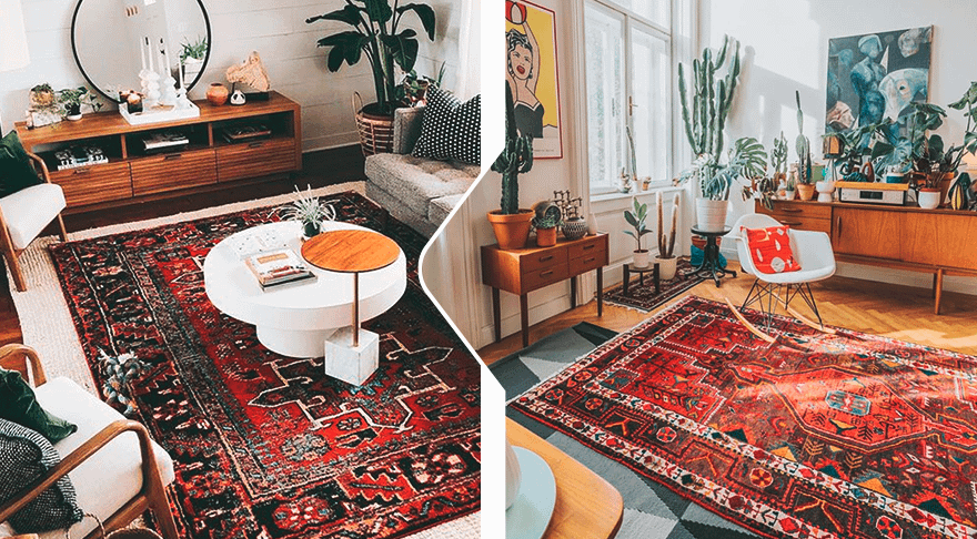 В тренде как яркие ковры с теми самыми узорами, которые в детстве заменяли нам мультфильмы, так и более минималистичные модели. А вот вешать на стену ковер все же не стоит. Если хочешь создать интерьер в стиле бохо, предпочтение отдавай гобеленовым картинам.
