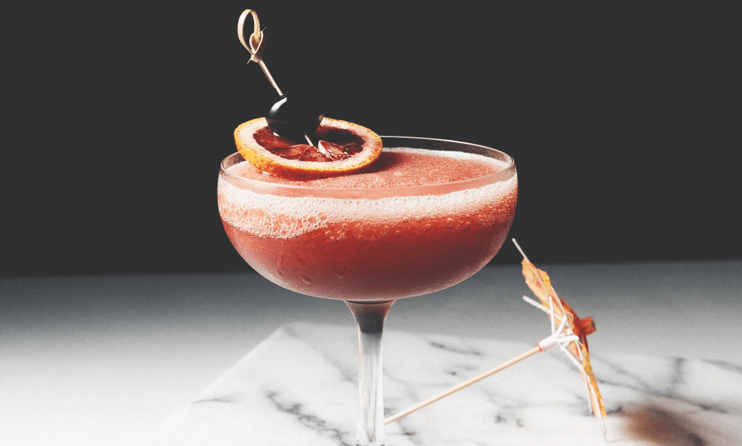 Смешай все ингредиенты. Сервируй шпажками с вишней и ломтиком кожуры.
