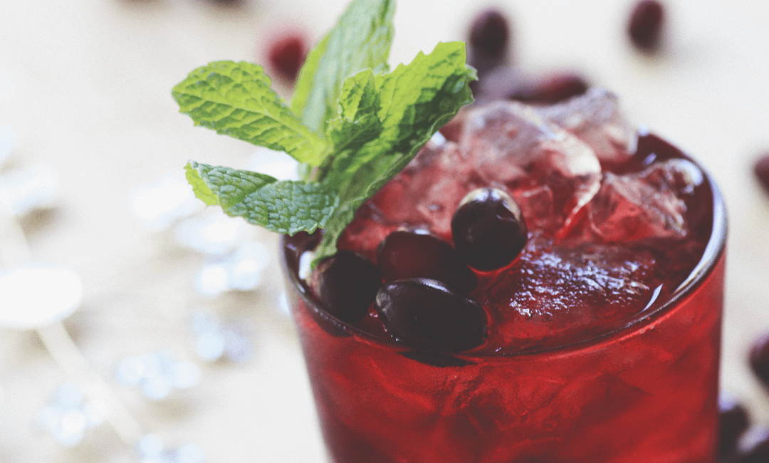 В кувшин положи несколько ягод клюквы, влей 6 ст. л. клюквенного сиропа, туда же положи дольки лимона и апельсина, добавь джин, перемешай. При подаче укрась веточкой мяты и клюквы.