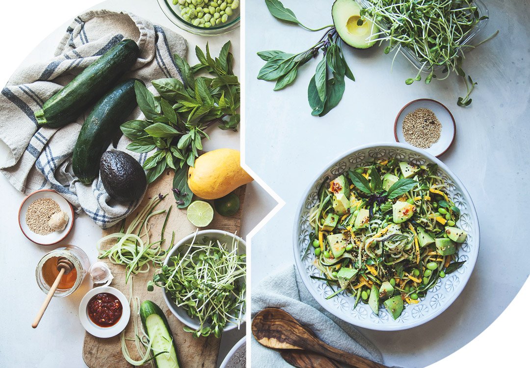 1. Салат из огурца, цукини и манго с медовой заправкой