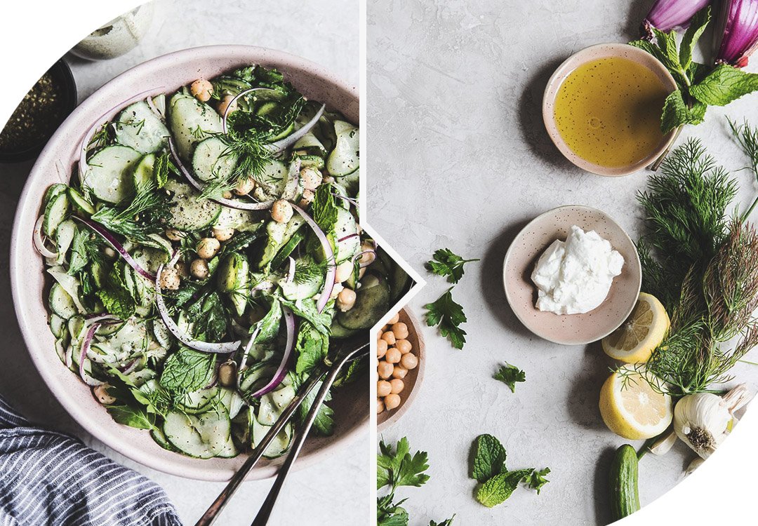 Хрустящий, свежий и ароматный салат. Привычные почти в каждом летнем блюде огурцы здесь открываются по-новому благодаря йогуртовой заправке.