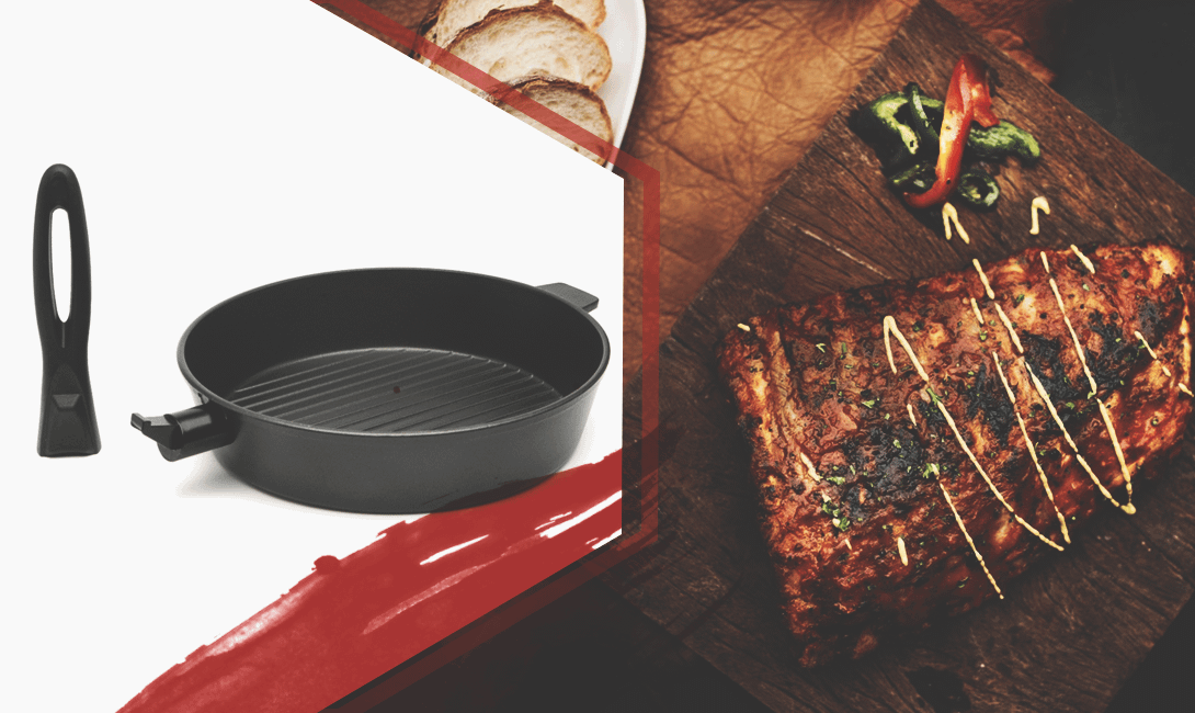Сковорода-гриль, выполненная из качественного литого алюминия, быстро и равномерно нагревается, не выделяя вредных веществ, и значительно ускоряет процесс приготовления пищи. На ней можно легко приготовить стейк до образования хрустящей корочки, быстро обжарить хлеб для бутербродов или овощи на минимальном количестве масла. Сковорода имеет прочное утолщенное дно с безопасным, антипригарным покрытием и съемную ручку, поэтому ее можно легко поместить в духовой шкаф.