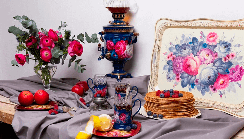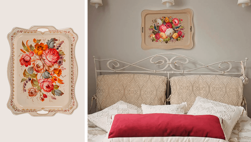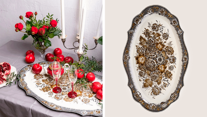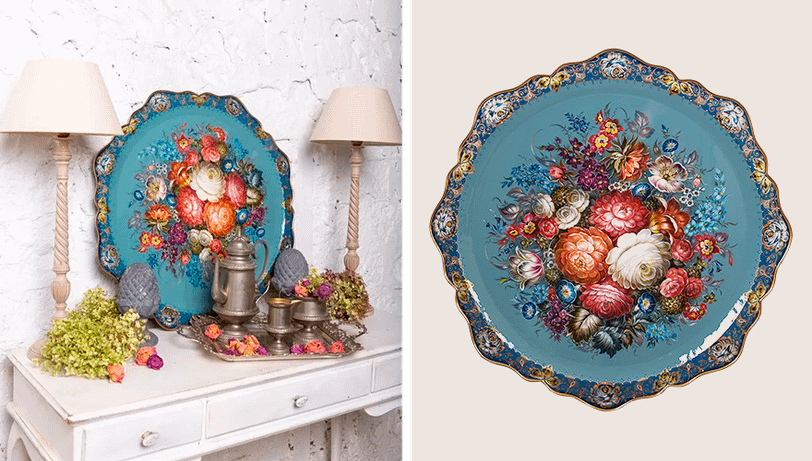 Жостовские подносы любят во всем мире: их можно встретить в Русском музее и Эрмитаже, а также в личных коллекциях западных политиков, в том числе британской королевы Елизаветы II, испанского короля Хуана Карлоса II, Лоры Буш и Жака Ширака. С гроздьями огненной рябины и птицами, ярко-алыми цветами шиповника или восточным орнаментом — жостовские подносы выглядят нескучно и современно. Можно повесить поднос на кухне в качестве настенного декора, разместить на нем свечи и вазу с цветами или просто использовать по назначению. Например, устроить праздничное чаепитие или организовать легкий завтрак с панкейками, джемом, кофе или апельсиновым фрешем.