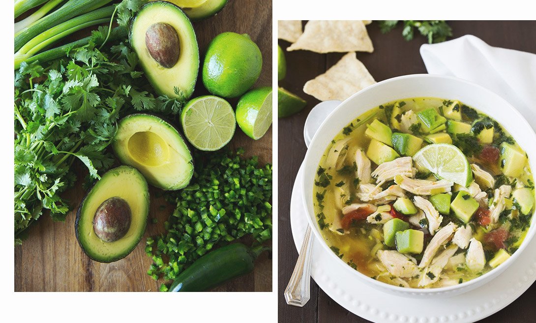 Нагрей оливковое масло, добавь зеленый лук, перец и обжаривай в течение двух минут. Заливай куриным бульоном, добавь помидоры, соль и перец по вкусу, а также мелко нарезанное куриное филе. Доведи смесь до кипения, а затем уменьши огонь. Закрой суп крышкой и, периодически помешивая, вари еще 10-15 минут. Перед самой подачей добавь к супу лаймовый сок и авокадо.