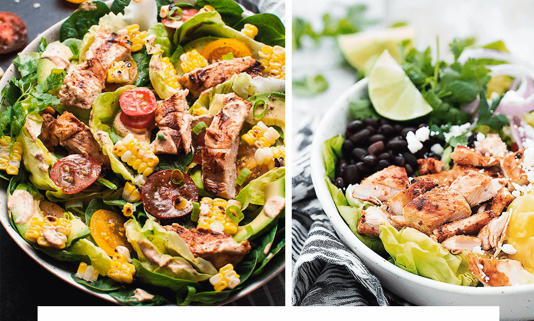 Смешай сметану, кориандр, тмин, чили, лайм и соль в глубокой чашке. В большом салатнике перемешай мелко нарезанные листья салата, курицу, помидоры, авокадо, красный лук, фасоль и кукурузу. Добавь соус и тщательно перемешай.