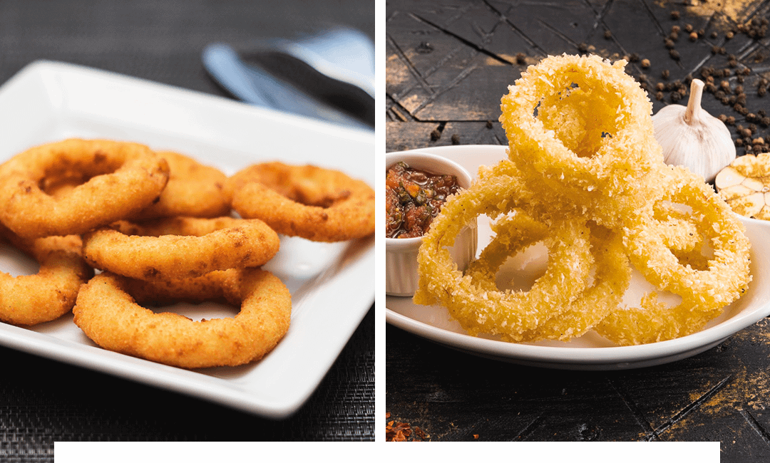 Разогрей масло в сковороде. Еще раз тщательно перемешай панировку, затем окунай луковое колечко сначала в кляр, а затем в оставшуюся муку. Выкладывай в кипящее растительное масло и обжаривай до золотистой корочки.