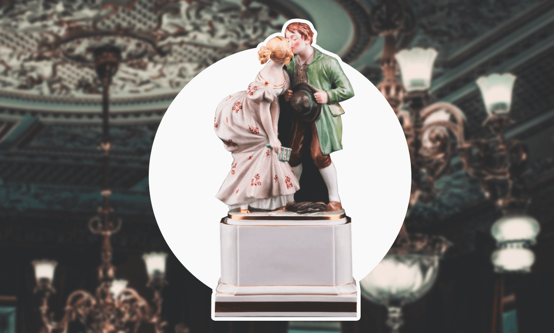 Сюжетом для этой статуэтки послужила сказка Г.Х. Андерсена «Свинопас». Сцена выбрана самая пикантная – принцесса целует принца, переодетого свинопасом, за музыкальную трещотку, играющую все вальсы и польки, которые есть на свете.