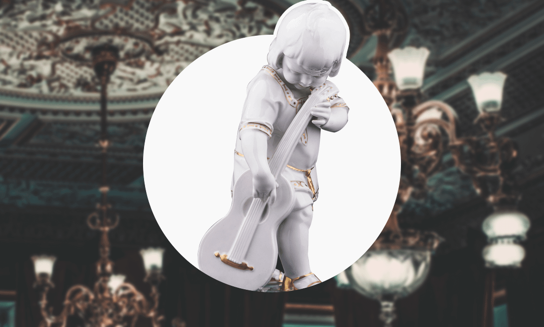 Сюжет простой, но очень трогательный: мальчик в национальном костюме увлеченно играет на гитаре. Фигура прописана до мельчайших деталей, а акценты – орнамент и пояс рубахи, тонкие сандалии – выделены позолотой.
