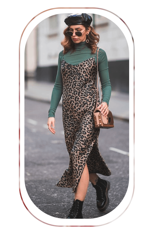 Если дресс-код позволяет эксперименты, присмотрись к сочетанию атласного платья с водолазкой. Такой образ получается одновременно сексуальным и сдержанным. Чтобы из дневного превратить его в коктейльный, достаточно добавить яркие аксессуары: фактурные серьги, шляпу или яркую сумку.