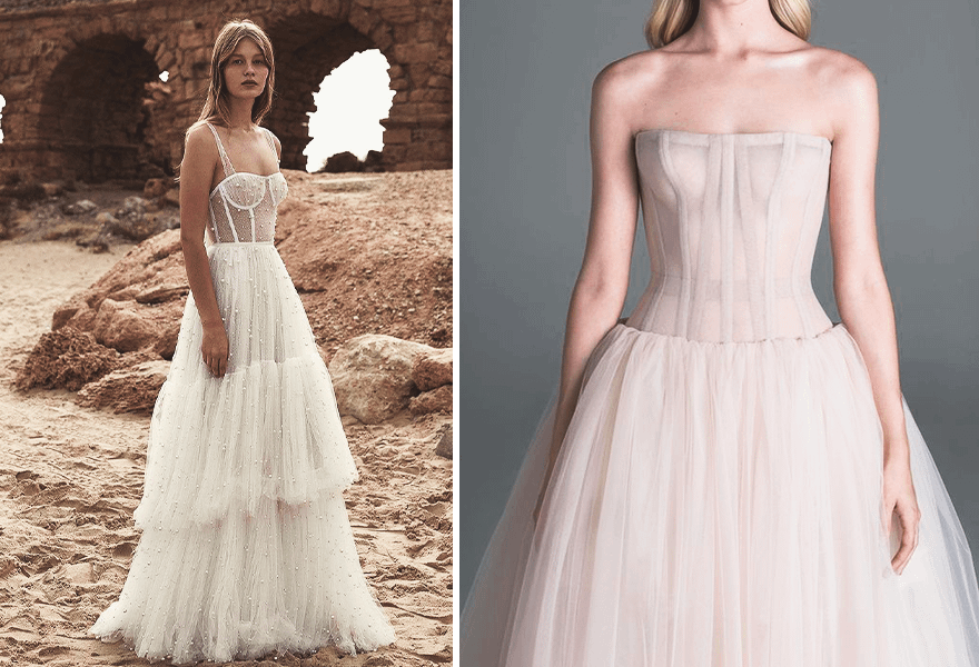 Наряду с лаконичными свадебными платьями популярностью пользуются и более откровенные, яркие и запоминающиеся. Один из вариантов — платья с корсетом, способные смоделировать утонченный силуэт. Такие гиперсексуальные, но при этом элегантные наряды можно увидеть в коллекциях свадебных платьев от дизайнеров Веры Вонг, Оскара де ла Ренты, Каролины Эрреры и Джонатана Симхая. Отличный вариант, если тянет к чему-то женственному, роковому и эффектному.