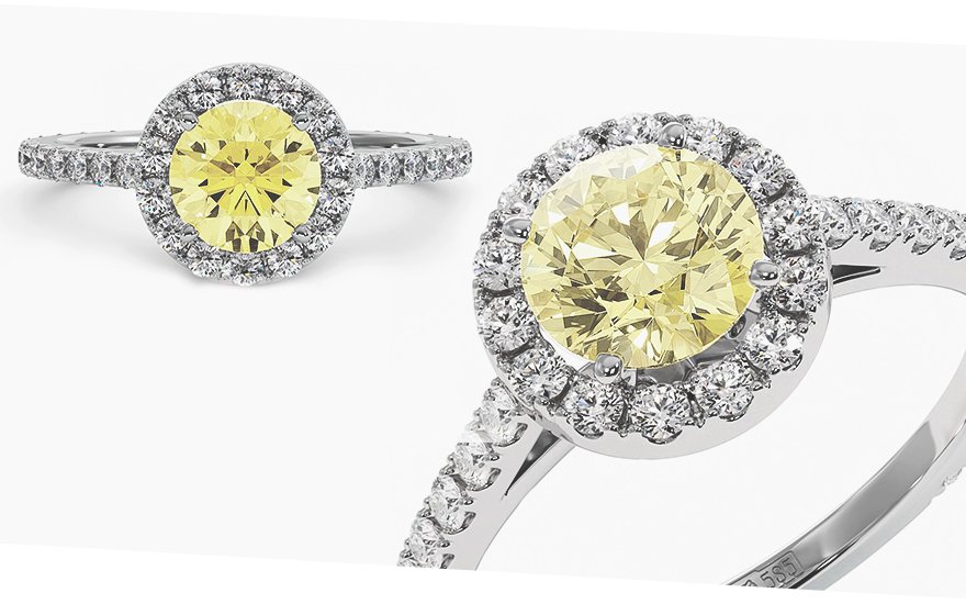Роскошное кольцо, в центре которого блистает желтый муассанит, окруженный многочисленными мелкими камнями. Как раз для тех, кто любит броское, но не вульгарное. Такой аксессуар определенно пригодится для особых случаев — к примеру, для романтического ужина в честь Дня Святого Валентина, знакомства с его родителями или обмена клятвами на свадебной церемонии.