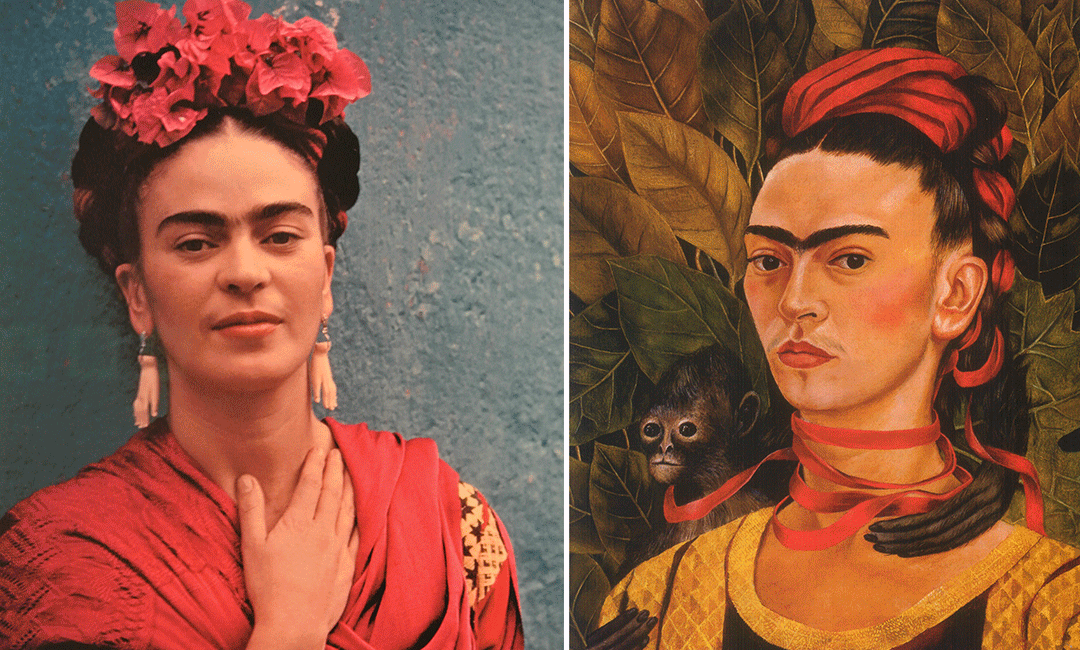 В своих картинах Фрида часто преувеличивала свою монобровь и усы, подчеркивая двойственность мужского и женского. Ее привлекала андрогинная внешность, хотя своей она не была довольна. Она заявляла, что недовольна тем, что в ней есть достаточно яркие мужественные черты: