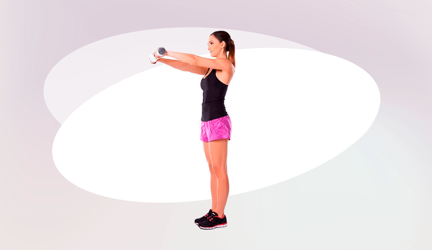 - Вытяни руки так, чтобы гантели оказались на уровне глаз.