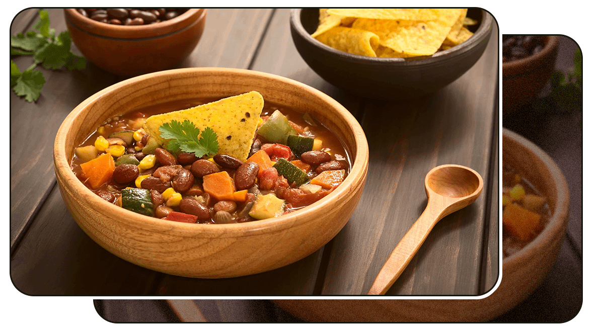 Уменьши огонь и вари чили 20–25 минут под крышкой, пока овощи не станут мягкими. В конце добавь лаймовый сок. Подавай блюдо с зеленью, йогуртом на растительной основе или авокадо.