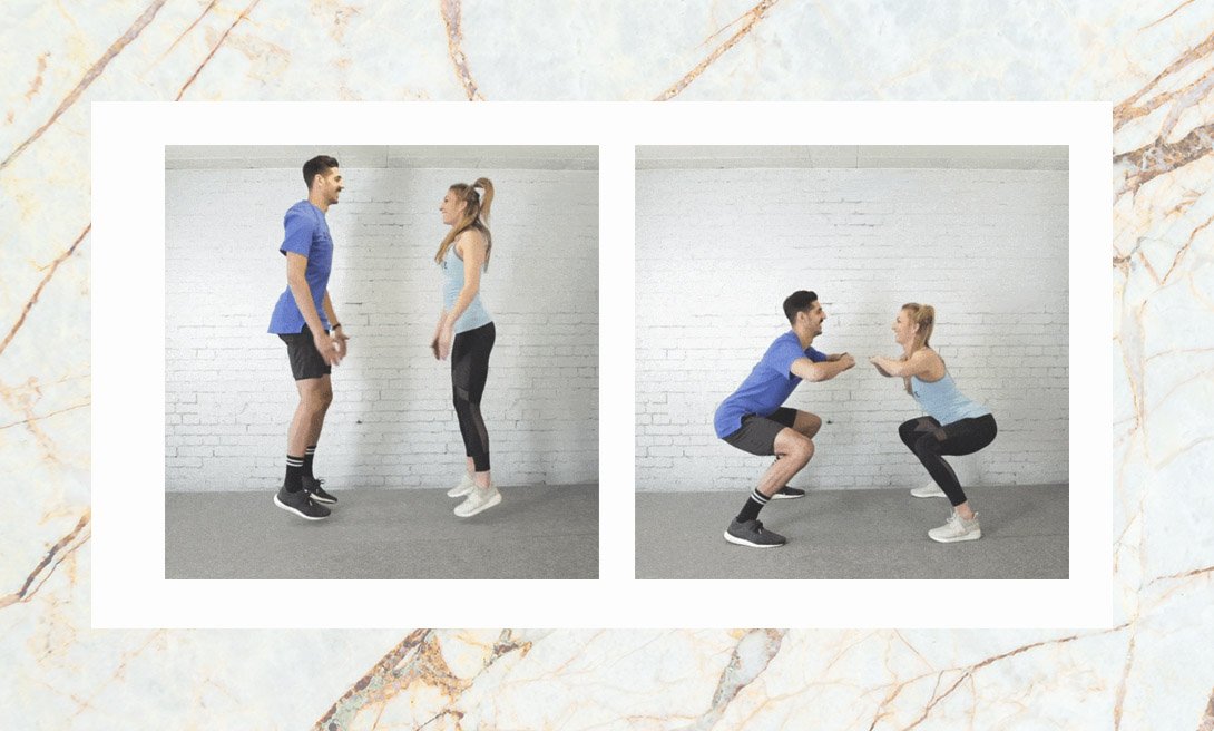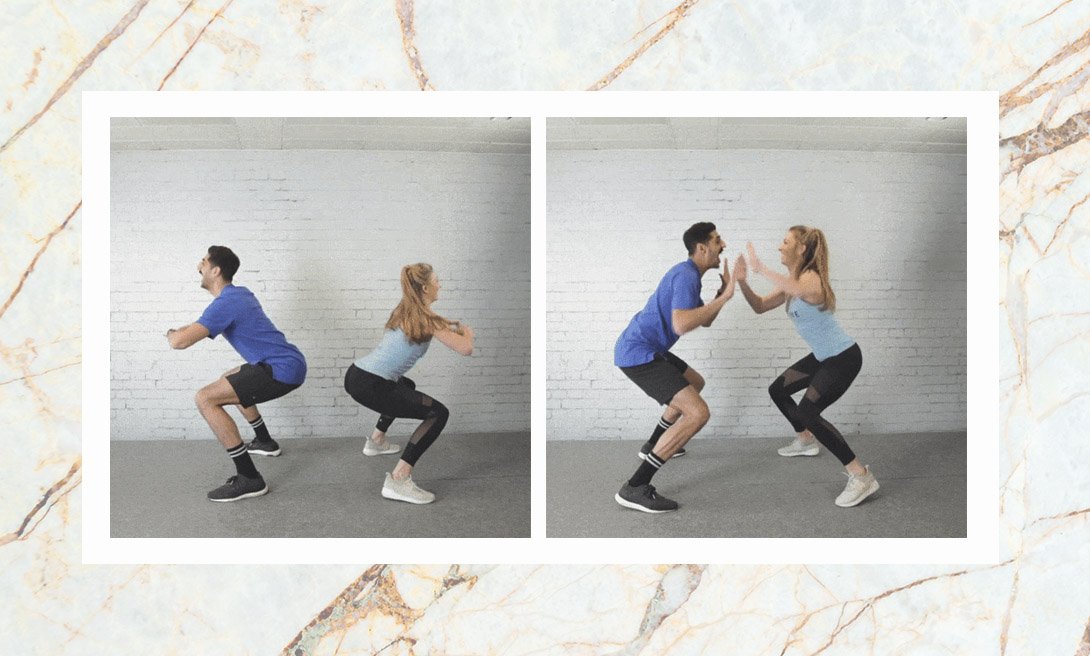 Это хороший вариант для разминки в паре с партнером. Упражнение прорабатывает икроножные мышцы и ягодицы.