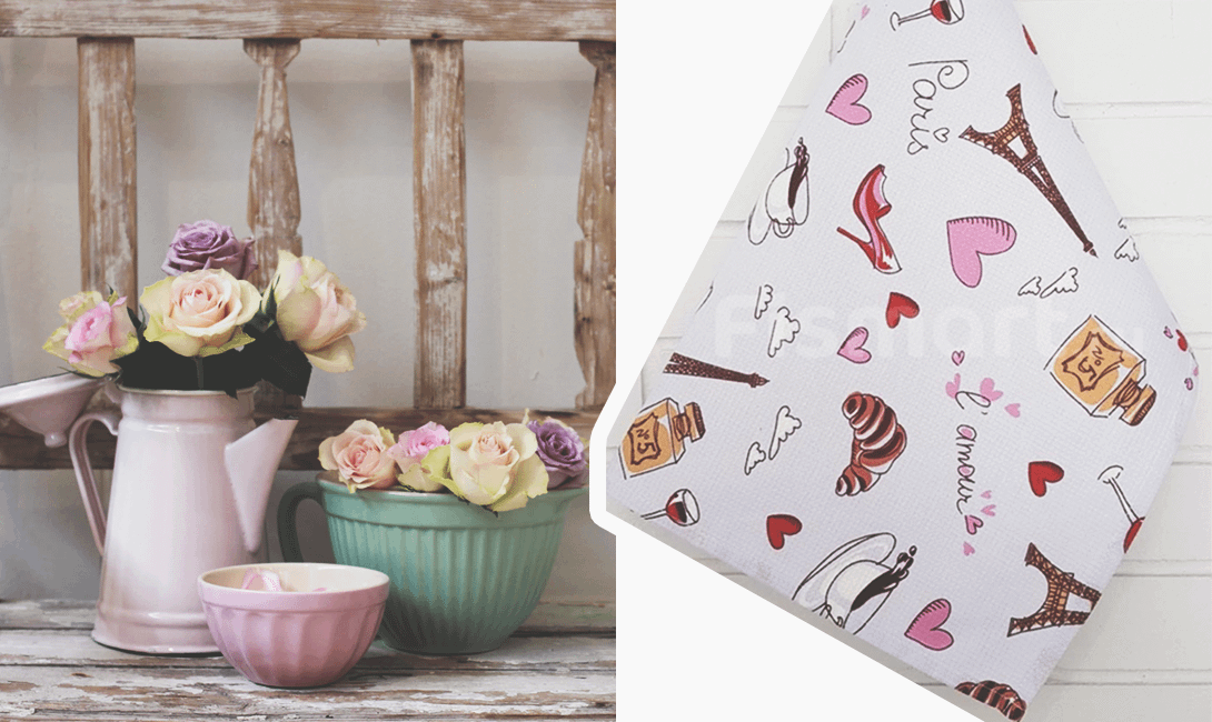 Круассаны, чашечка кофе, Эйфелева башня, бокал красного полусладкого и Шанель №5 — дизайн этого полотенца украсит кухонный интерьер романтичных и утонченных натур. Такой аксессуар не оставит равнодушной ни одну хозяйку и гармонично дополнит кухонный интерьер в стиле прованс или романтик.