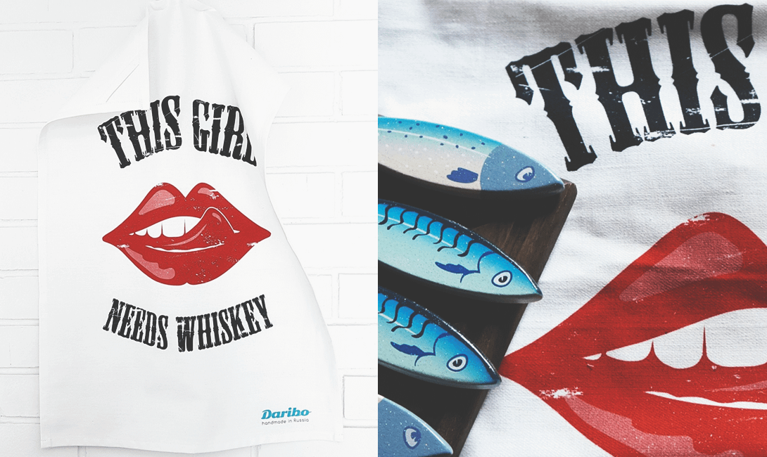 Интересная хлопковая модель, выполненная в классической цветовой гамме, — броский и практичный вариант для любой кухни. Такой подарок придется по вкусу девушкам, которые любят покрепче.