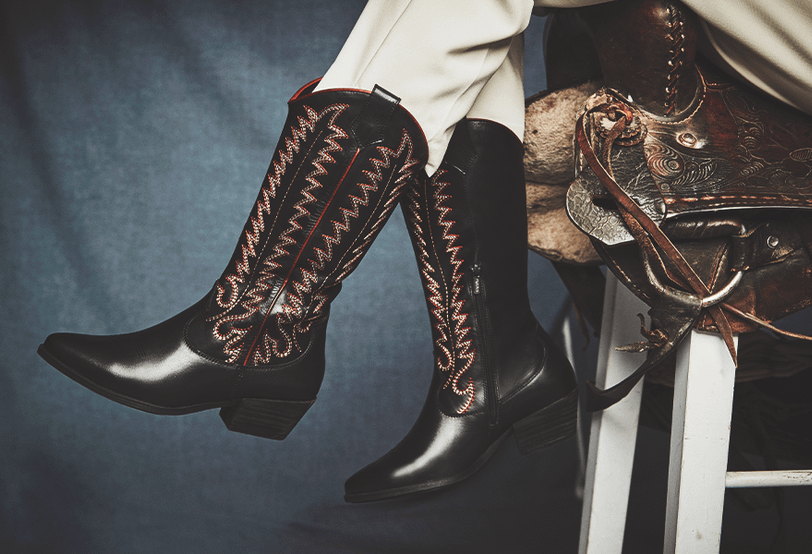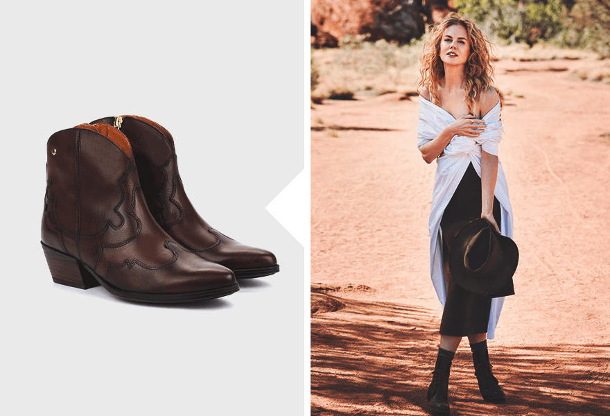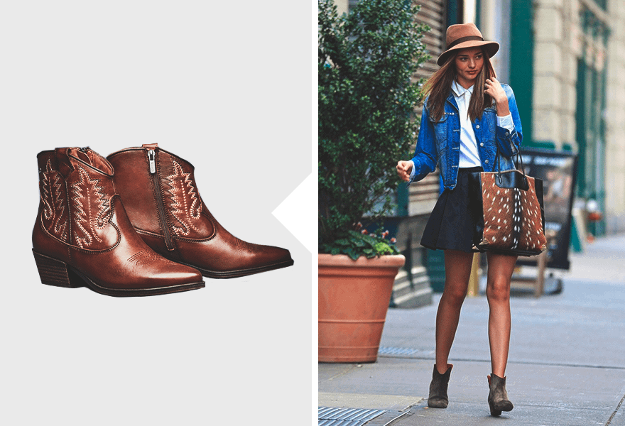 Короткое платье с мелким цветочным принтом — вариант для лета, но оглянуться не успеешь, как оно уже тут. Самый актуальный фасон — облегающее платье-сарафан на широких бретелях. Такое будет особенно эффектно смотреться с высокими ковбойскими сапогами, лаконичными или украшенными перфорацией. Если захочется добавить в наряд еще одну интересную деталь — вспомни про ковбойскую куртку, например, со шнуровкой или замшевой бахромой, которая добавит твоему образу кокетливой дерзости.